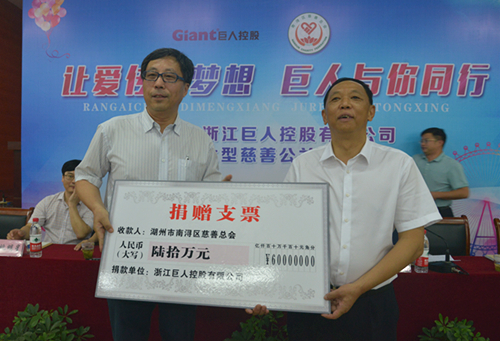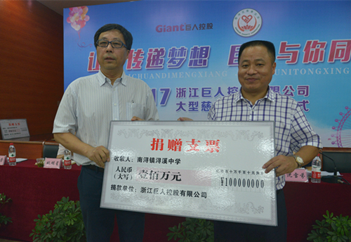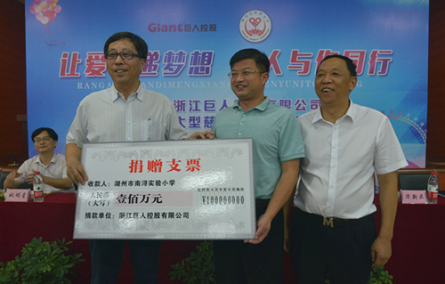 9月10日下午,正值第33個教師節,“讓愛傳遞夢想 巨人與你同行”2017巨人控股慈善公益捐贈儀式在潯溪中學報告廳舉行,南潯區副區長沈雪芬女士、秦勝先生,南潯區慈善總會會長華新民先生,南潯區教育局副局長姚明星先生等政府部門和機構領導,巨人控股董事長錢江先生等公司領導及潯溪中學、南潯實驗小學教師代表,區教育局代表共計160余人出席。捐贈儀式由沈雪芬女士主持。