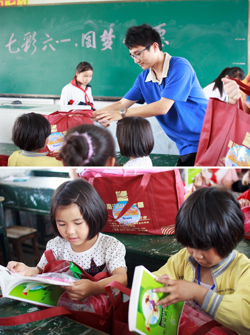 拿著手中的大禮包,特別是看到粉紅色的新書包,南潯鎮思進小學五年級的李小靜(化名)有說不出的驚喜。“這是我收到的最好的節日禮物,明天我就可以背新書包上學了。”