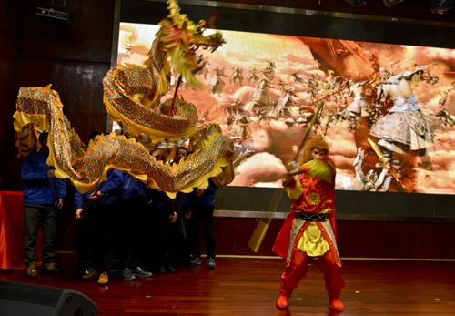 晚會(huì)在歡快熱烈的氣氛中進(jìn)行。開(kāi)場(chǎng)歌舞秀《金猴鬧龍宮》成為第一個(gè)高潮,公司高層扮演師徒四人取經(jīng)并演唱《敢問(wèn)路在何方》,讓全場(chǎng)爆笑不已、掌聲連連。