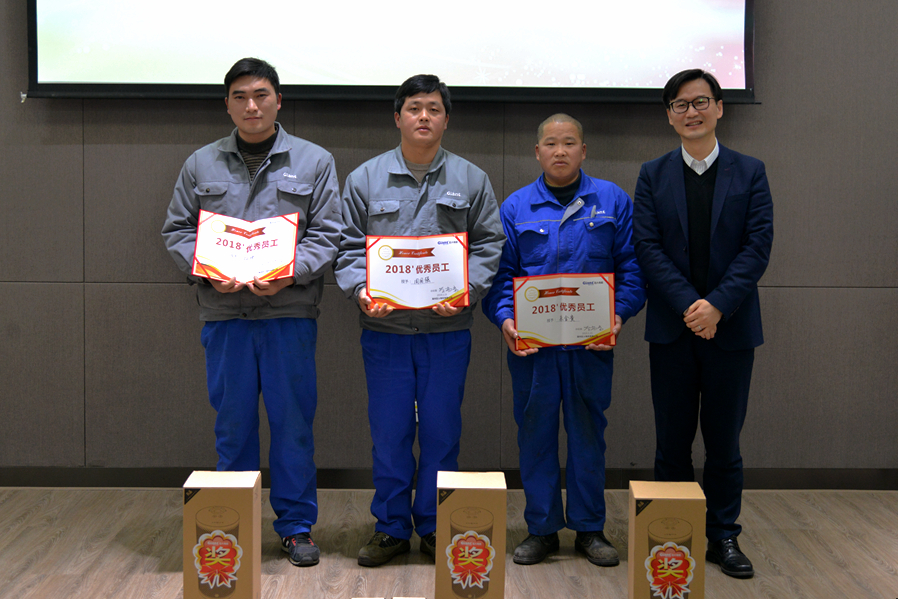大會授予生產部副經理張萬友“2018年度明星員工”稱號。張萬友主管生產工藝與新產品試制工作,在他的帶領下,曳引機、空壓機電機等產品保質高效地投入批量生產。