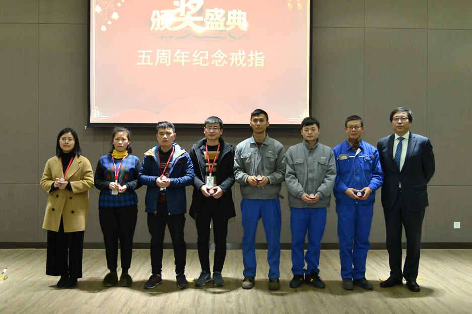董事長錢江為五周年員工頒發(fā)紀念戒指