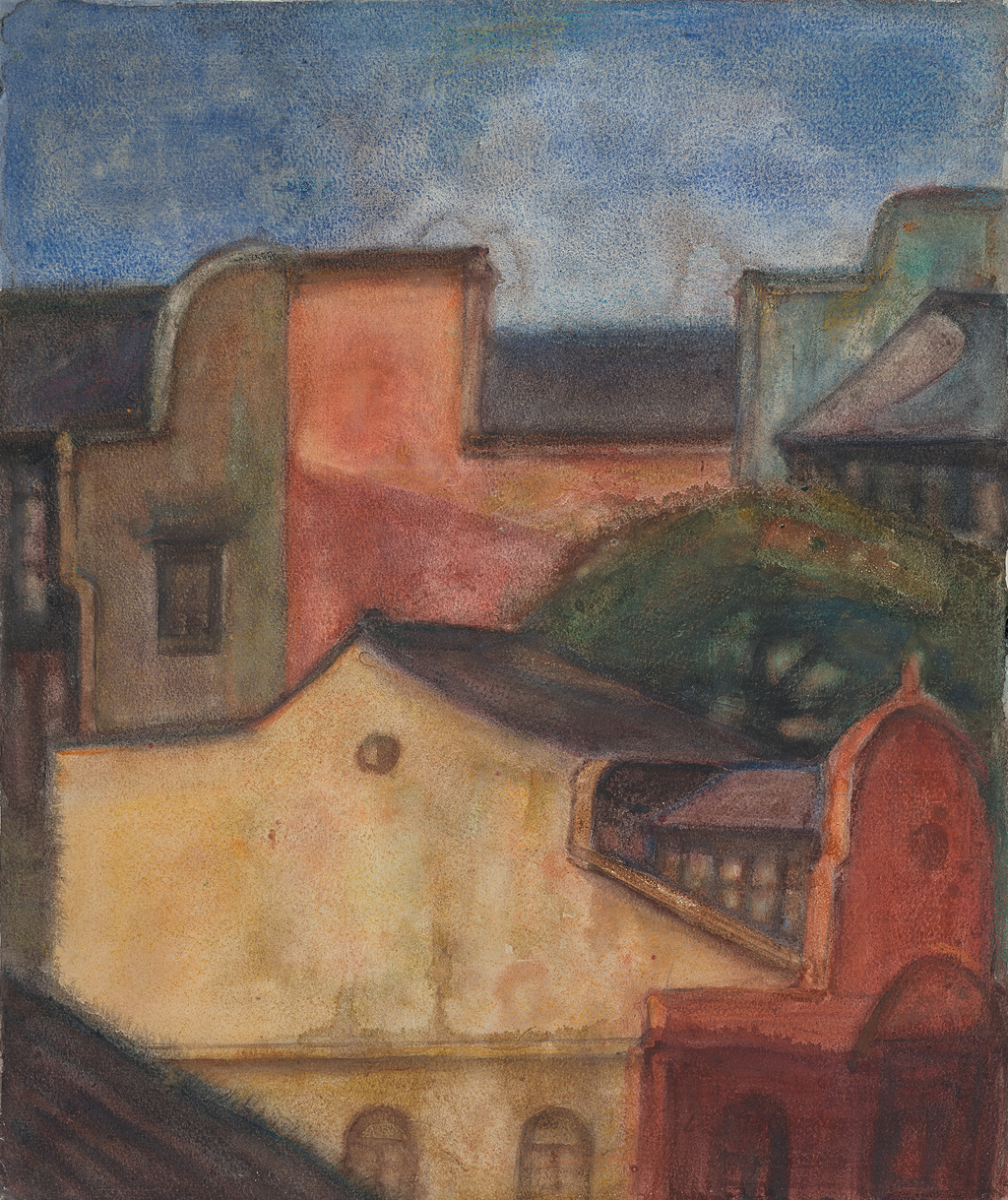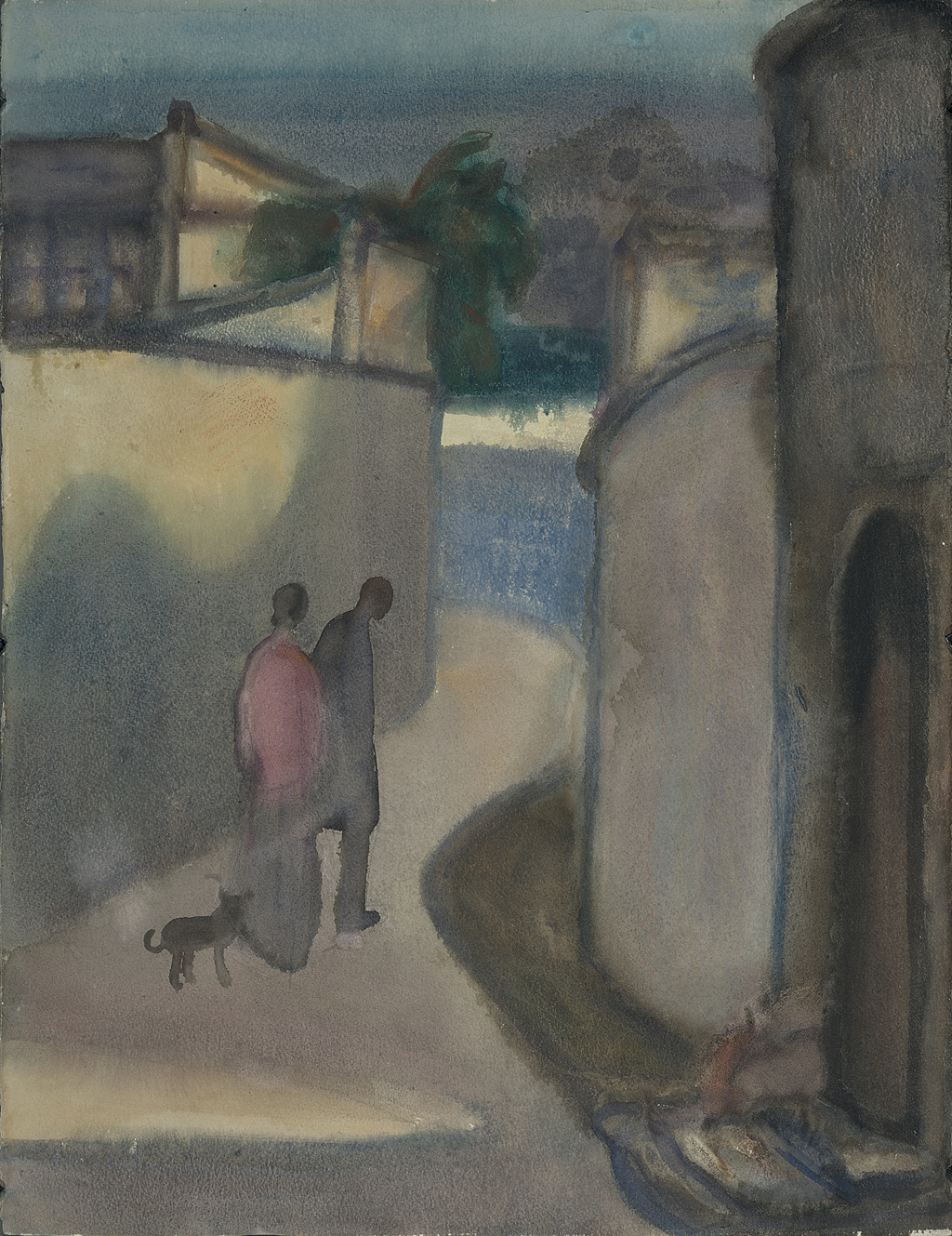 莊弘醒先生,童年生活在民國時代的南潯。這里,水光月色下的灰青瓦當、故園春色里的茶色欄柵、油紙傘下映輝著的夢里故人、斑駁粉墻上蕩漾出的虛空晃影,成為他不盡的鄉愁。這種故鄉情懷是他在水彩中找到獨特表現的契入點,咫尺畫幅內流淌出濃濃的思鄉之緒,它穿越客觀物象,在水色暈染中朦朧地幻化出遠逝的意境。