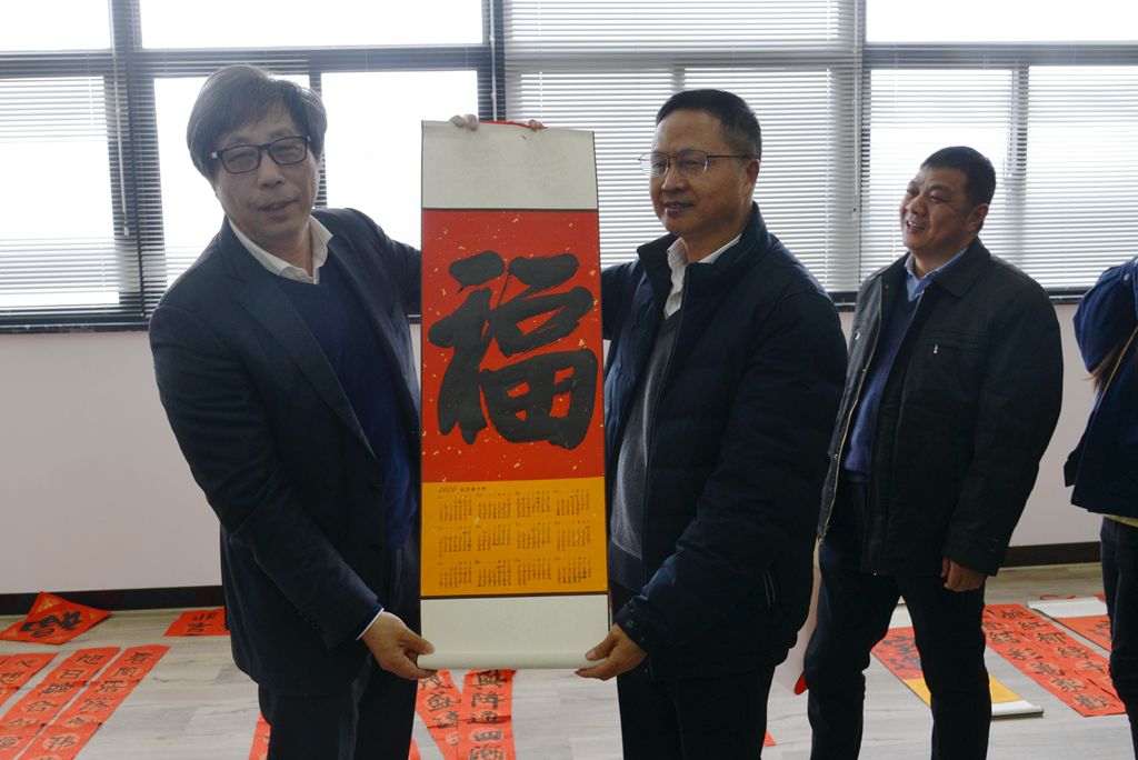 春節(jié)將至,年味漸濃。1月14日,市總工會(huì)主辦、市工人文化宮、湖州市職工書(shū)畫(huà)社、湖州市職工書(shū)畫(huà)協(xié)會(huì)聯(lián)袂組織邀請(qǐng)多位湖州知名書(shū)畫(huà)家光臨巨人集團(tuán),在員工餐廳舉辦了一場(chǎng)氣氛濃烈的“為一線職工送書(shū)畫(huà)和春聯(lián)”活動(dòng),為巨人集團(tuán)廣大員工送來(lái)新年吉祥和迎春祝福。湖州市政協(xié)副主席、市總工會(huì)主席鐘鳴,南潯區(qū)人大副主任、區(qū)總工會(huì)主席魏海松等各級(jí)領(lǐng)導(dǎo)在巨人集團(tuán)董事長(zhǎng)錢(qián)江、副總經(jīng)理高宇等企業(yè)高管陪同下,蒞臨現(xiàn)場(chǎng)觀摩活動(dòng)。